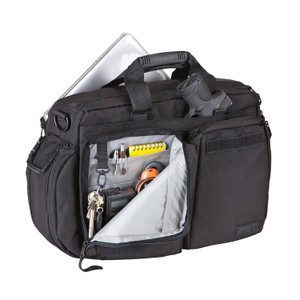 The 5.11 Tactical Side Trip Briefcase 32L combines tactical-grade durability with professional versatility. Built from rugged 1050D textured nylon, it's designed to handle daily carry, travel, and duty use while maintaining a clean briefcase profile. The main compartment includes a padded laptop section that fits up to a 15" device, and the MOLLE/5.11 SlickStick web interior supports modular organization. A hidden TacTec covert pocket offers discreet storage, while expandable side pockets add capacity when you need it. Finished with a structured bottom panel with rubber feet, a non-slip adjustable shoulder strap, and a pull-out rainfly, this bag is ready for workdays, range days, and everything in between.